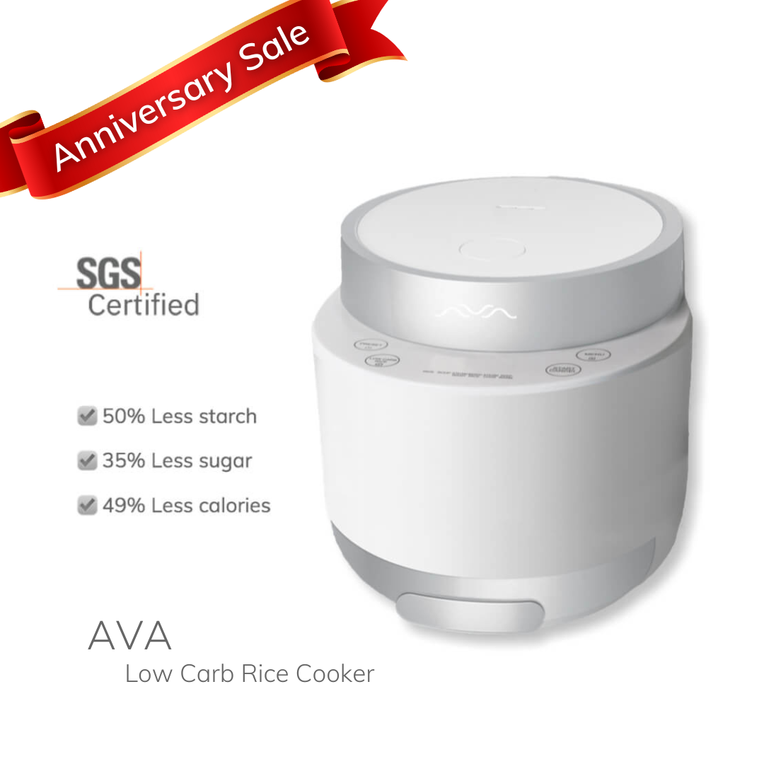 1. How does it lower sugar / carbohydrates in rice? - It uses a SGS certified technology that drains the starch water to a drain tray. Unlike other rice cooker that claims to lower sugar, it does not merely skim the starch water from the surface. 2. Does the cooked rice taste the same? - After flushing the excess starch water, the AVA rice cooker uses the remaining water to steam cook the rice. This ensures a fluffier, better textured and even better tasting rice. 3. How much rice can it cook? - The AVA 2L Rice Cooker can produce 3 cups of low-carb rice. 4. Can it cook the conventional way? - If you desire to cook the conventional way, the AVA 2L rice cooker can produce 7 cups of boiled rice. 5. Can it cook brown, red, black or Adlai rice? - Yes, it can cook whole grain rice varieties and make then even healthier.